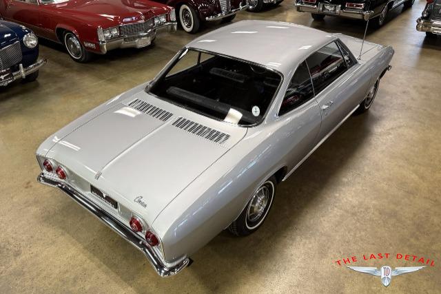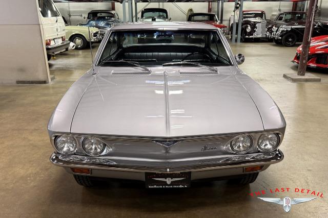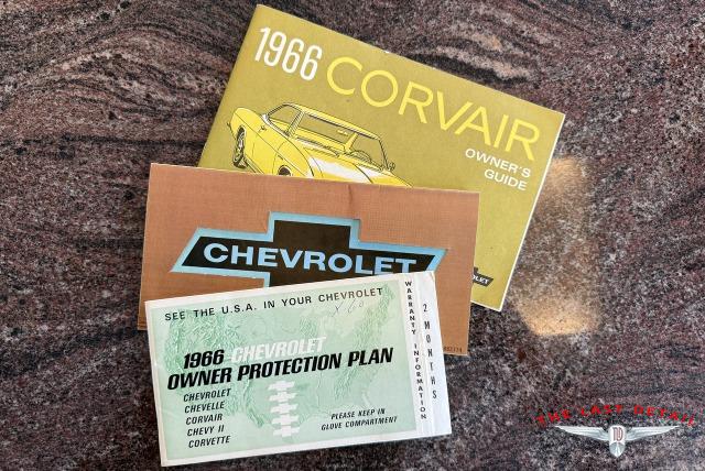 This 1966 Chevrolet Corvair is a fabulously preserved and presented example of the sporty Monza Sport Coupe body style, with just 9,843 miles at the time of writing. Powered by the optional 110-horsepower version of the Corvair's famous air-cooled 164 cubic-inch "Flat-6" engine, this Corvair Monza Sport Coupe also features Chevrolet's 2-speed Powerglide automatic transmission with a distinctive dash-mounted 'T' handle shift lever. Sporting a Silver paint finish, the Corvair is well equipped with a Black bucket-seat interior, plus tinted glass, a Motorola Solid State pushbutton AM radio, and steel wheels mounting full-size wheel covers and White stripe tires. Documents include the original dealer-issued Protect-O-Plate warranty card and warranty booklet, plus an original 1966 Corvair owner's manual. A fresh service and detailing make this highly collectible 1966 Chevrolet Corvair Monza Sport Coupe ready to collect, enjoy, and show. Don?t miss out on this innovative and interesting Corvair Monza! Be sure to contact us today to see it for yourself, obtain full details, and prepare to add it to your collection!